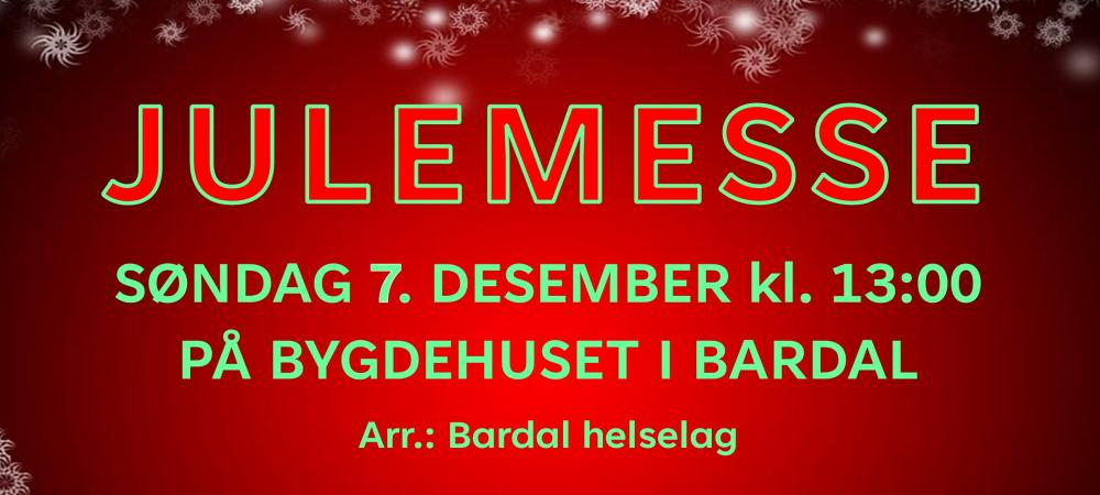 Julemesse søndag 07. desember 2025 - 13:00 Sted: Bardal bygdehus. Arrangør: Bardal Helselag. Helselagets julemesse